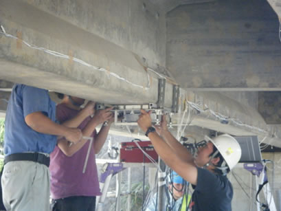 本研究室のメンバーは、伊藤幸広先生を筆頭に修士2年1名、修士1年3名、学部4年生3名で構成されています。学部4年生1人が大学院進学を希望しているほか、今年の10月に学部3年生3人の研究室配属が決定し、今後賑やかな研究室になりそうです。 今年度の活動としては、鹿児島市で開催されたプレストレストコンクリートの発展に関するシンポジウムに参加し、本研究室の研究内容の展示を行いました。また同シンポジウムにおいて、伊藤先生および学部4年生古瀬君が「プレストレストコンクリートの発展に関するシンポジウム ポスターコンペ」の準グランプリ賞を受賞しました。その他の活動としては、本研究室で開発した装置を用いて長崎県富田橋や長崎県軍艦島、佐賀県東古川水門の劣化状況の調査を行うなど精力的な活動を行っています。 最近の研究内容としては、老朽化する構造物が急増する今後を見越し、コンクリート構造物や鋼構造物の劣化状況を効率的に検査するための各種試験装置の開発を中心に行っています。現在開発中の装置としては、以下のようなものがあります。 ・ラインセンサスキャナを用いた全視野ひずみ計測装置 ・熱可塑性樹脂を用いた鋼材の断面形状測定装置 ・テレセントリックレンズを装着したデジタルカメラによるひずみ計測装置 ・小径孔を利用したコンクリート構造物の内部可視化装置 ・コンクリート構造物内部の鉄筋探査装置 本研究室のホームページをリニューアルしました。開発した装置や研究に関してご興味のある方は本研究室のホームページを訪れてみて下さい。