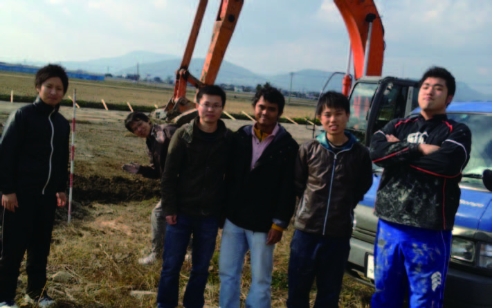 当研究室の特色は、現場に出向く機会が多いことです。 例えば、上記の流域治水に関する研究では、佐賀県神埼市内に流れる城原川流域の現場まで研究室総出で出向き、スウェーデン式サウンディング試験を行うなど、これから社会に出て行く私達にとってはきわめて実践的な社会勉強になっています。