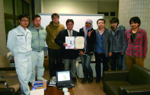 最後になりましたが、われらの日野先生が、今年の12 月に低平地沿岸海域研究センターの教授に昇格され、当研究室の活況ぶりが増しました。 日野先生はさらに、今年の11 月に平成24 年度佐賀大学優秀科学技術研究賞も受賞されました。 日野先生は益々ご多忙になると予想されますが、くれぐれもご自愛いただき、私達へのご指導をいただくことを願っています。