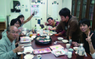 数年前には,帯屋先生が別荘(脊振のふる~い民家)を購入されました。 そこでは,研究室のみんなと改修作業や,ゼミ合宿などを行っています。 ゼミを行う際に必要なプロジェクターも完備しており,たまにこれを使ってゲームや映画を見たりします(大迫力です)。 また,飲み会を行ったり,トランプやUNO をやったり・・・と,楽しく過ごしています。