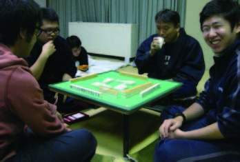 今年の11月には,毎年恒例の研究室の中間発表会を大分県玖珠郡九重町の共同研修所で行い,それぞれの研究の進捗状況を発表しました。 そして発表後は,飲み会と麻雀が始まりました。 今年度は麻雀好きな学生が多く,麻雀が大好きな大串先生と野口先生は,とても楽しそうでした。