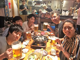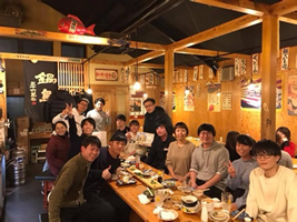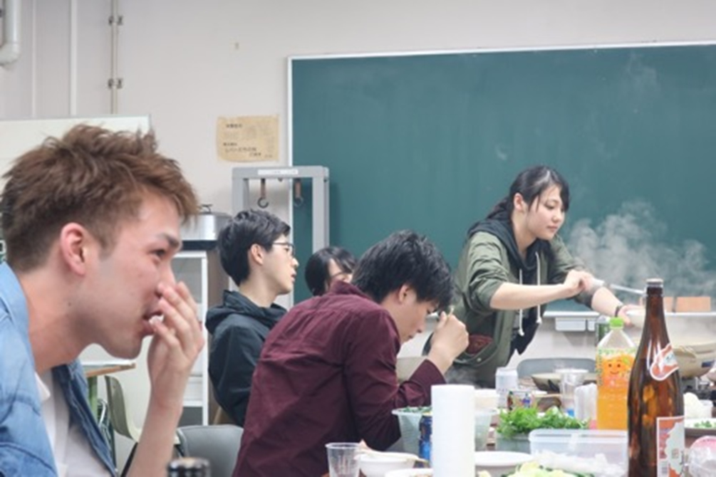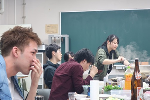 また、研究室では時期ごとに様々な催しを行っています。4月には新たに加入したメンバーの歓迎会を含め、花見を行いました。また、7月には前期のお疲れ様会、10月には新たに加入した留学生の歓迎会、12月には忘年会といった様々な催しがありました。また、留学生との交流も盛んで各国の伝統料理を持ち寄ったパーティも行われました。それぞれの催しは研究室の先輩や後輩との交流はもちろん、先生方とお話をするとても貴重な機会となっています。